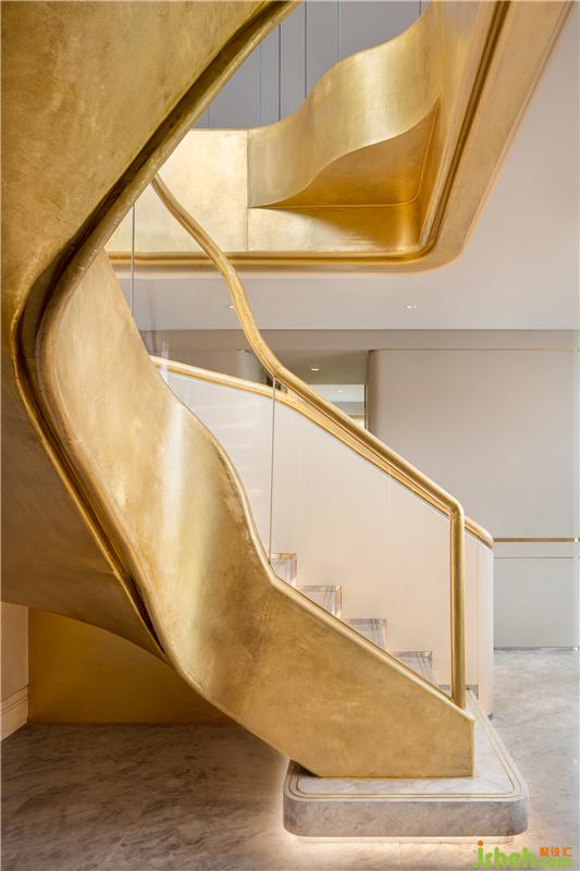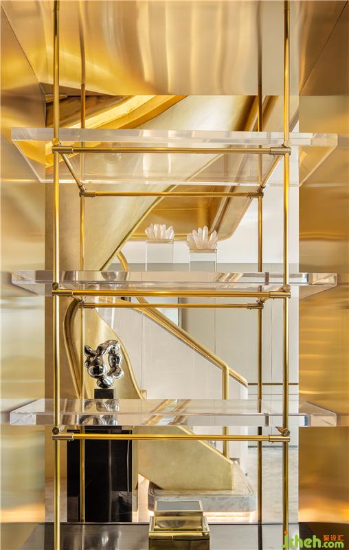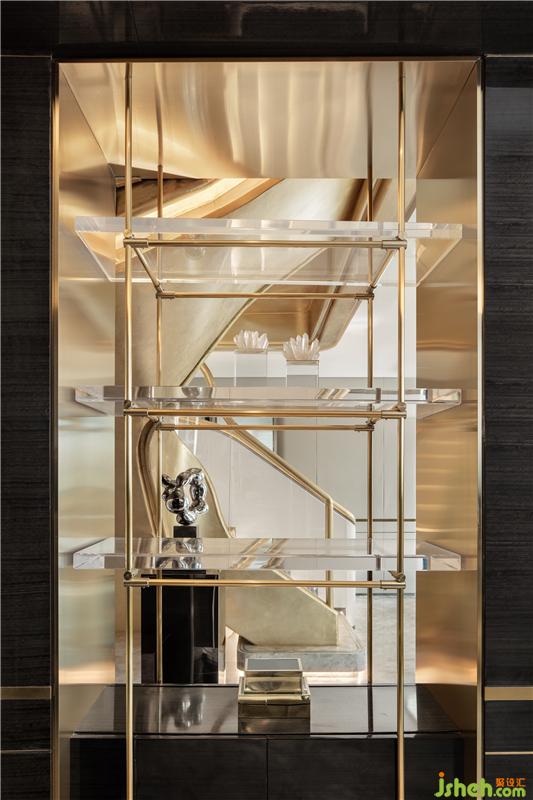 串联起二层的公共区域创新地被打造为一座书房,一家人在书房中相遇,展现了都会新贵们专注内心生活的「雅仕」之风。这样不拘一格的设置,出自新贵们的自信与随性。在他们眼中,人文素养不再是象牙塔中的「高阁」之物,而是由内而外地浸染于日常生活中,却又与书房贵族化的奢华质感毫不违和。