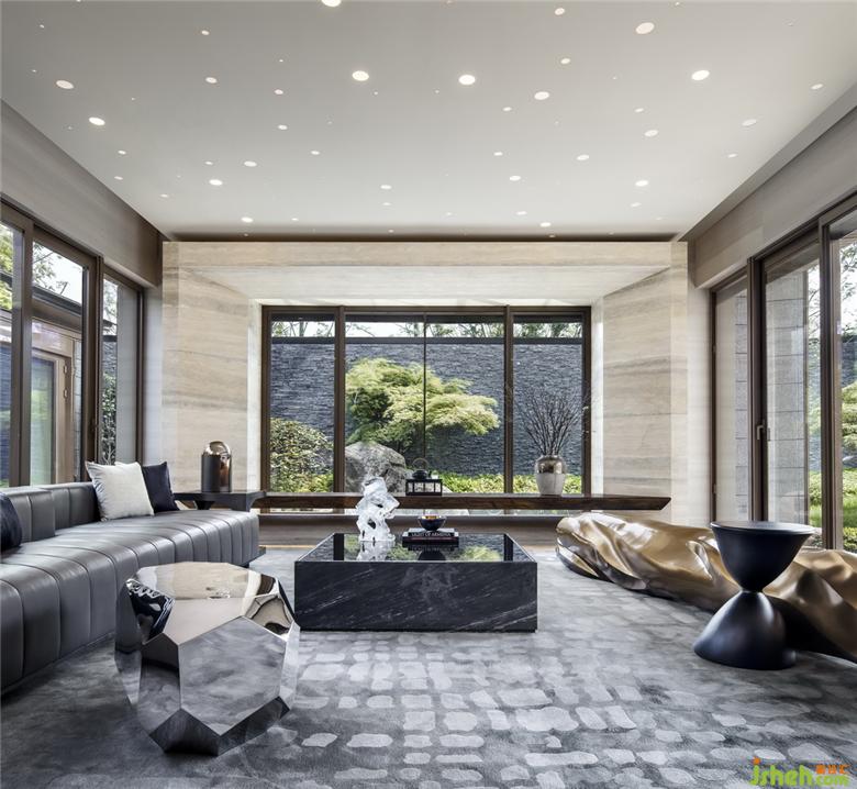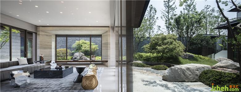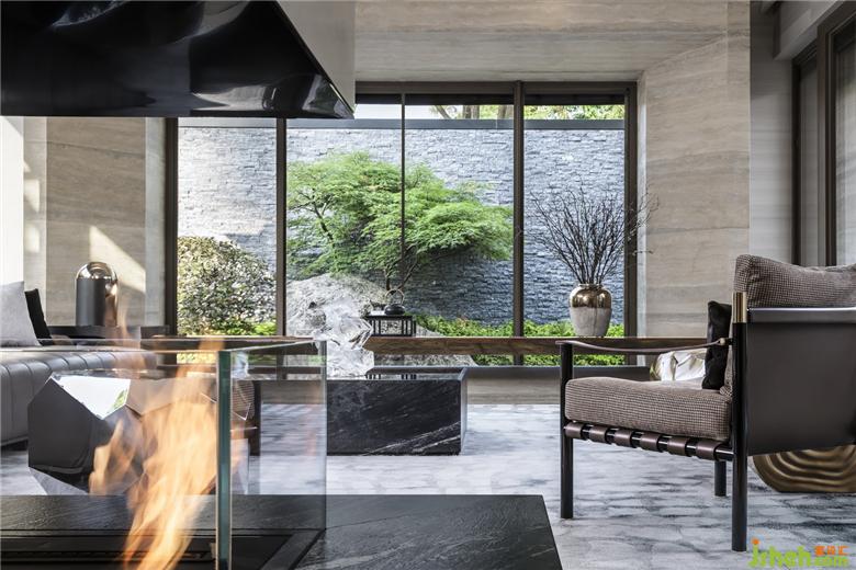 在一个有着明显文化印记的地方,如何以文化来回应?在建筑与环境条件相对优越的项目中,如何定位室内设计的身份?在双层地下空间,如何点亮昏暗并赋予空间意义?我们并不局限于对「文人」、「禅意」、「风雅」等园林固有意向或符号的平铺直叙,而是在平面规划前期便介入项目,以设计来构筑体验的有序化:空间结构的中心(即客厅)成为设计的「意义核心」,纵横生长两条轴线——横轴串联自然的观赏之道;纵轴牵引精神的外放与内敛。