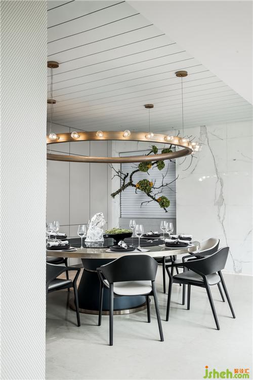 我们希望描绘一副徐徐展开的卷轴画,引导居者在与自然共栖的状态静观自得,物质的结构渐渐隐去,精神力量成为整个居所的内在支撑。室内设计师