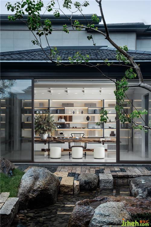 墙壁相隔、回廊相界,我们将园林的「层次感」基因注入室内空间,首层择五组墙壁为兴造的核心,勾勒「因景设路、因路得景」的观游体验,于室内呈现传统园林空间的当代性表达。