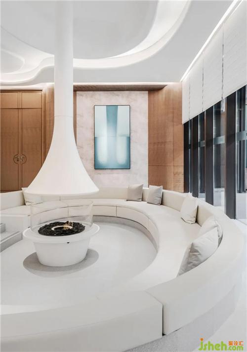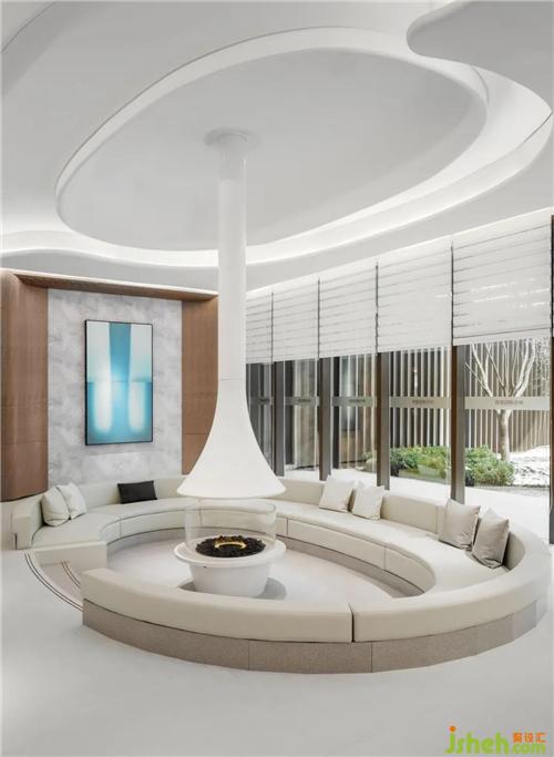 「水珠」状的壁炉成为空间的中心