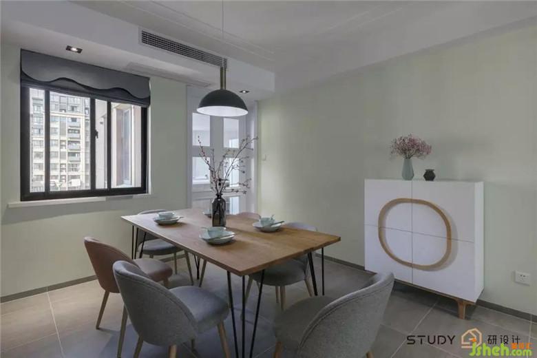 室内设计师餐厅的设计上利用了简约的手法和材质,搭配上精简别致的吊灯,营造出餐桌上的舒适与温馨。