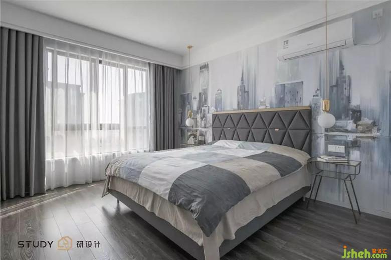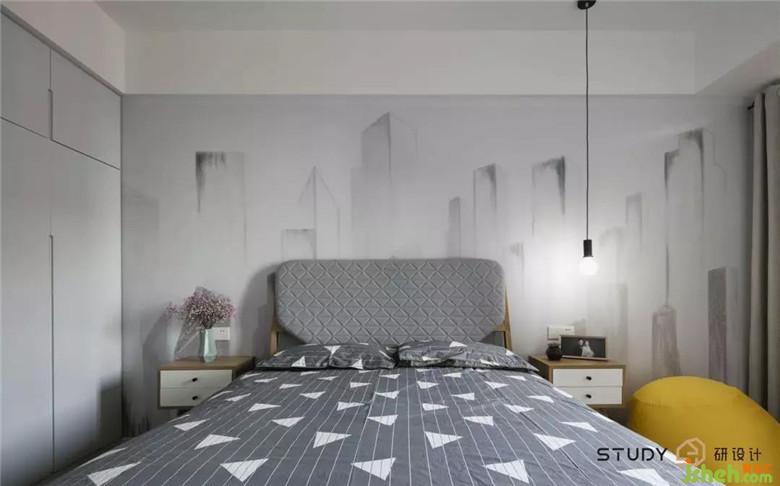 次卧在床的选择上,室内设计师特意挑了灰白色的款式,单色的色调以简单的为主,简单大方。