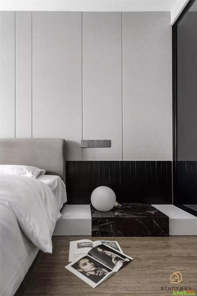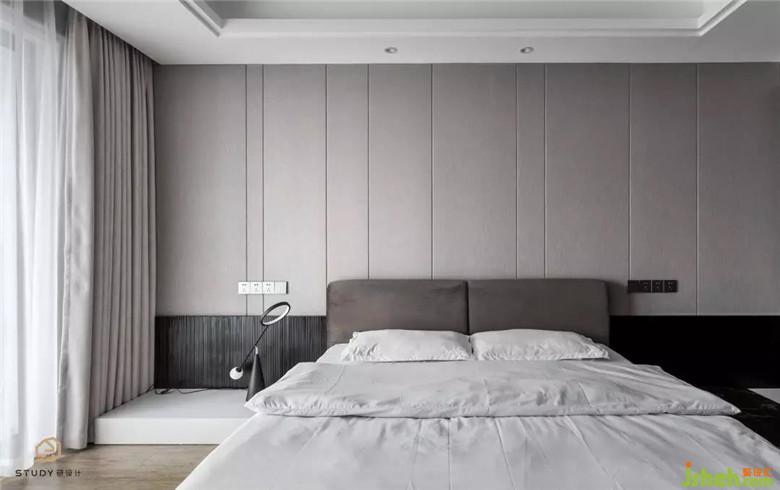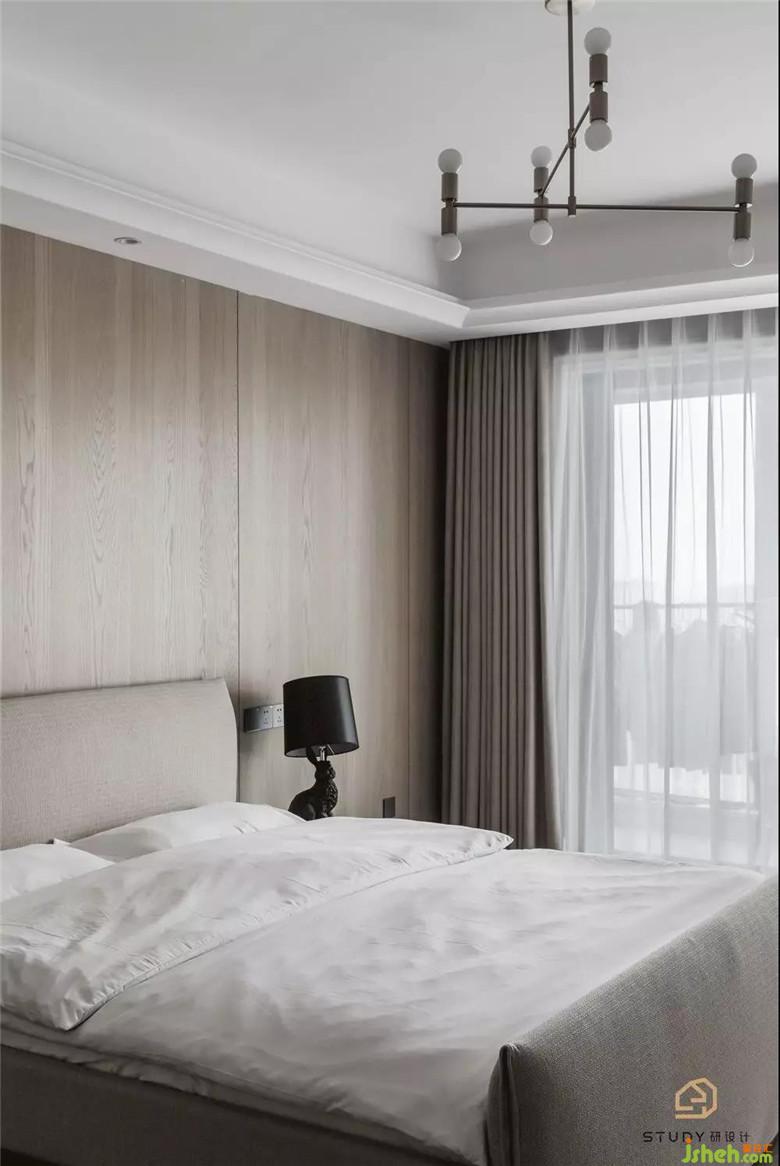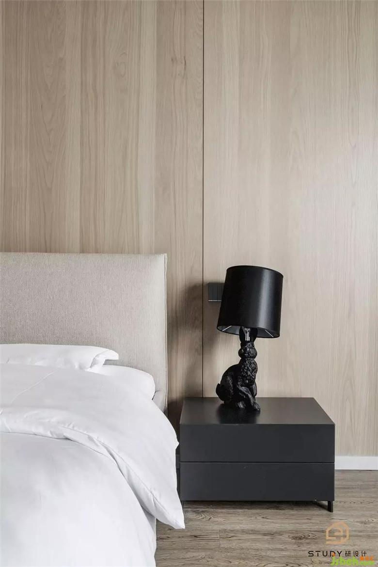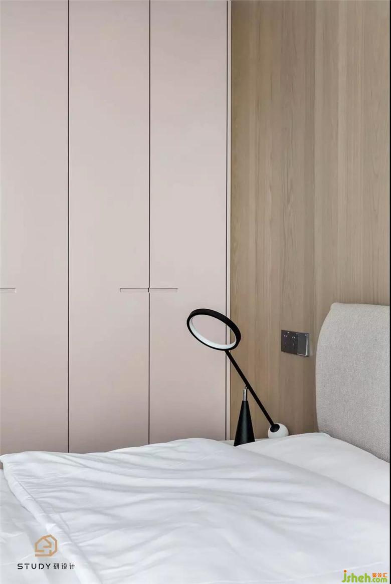 次卧室改变了原先呆板对称的床头造型,取而代之的是自带温柔属性的天然木饰面,次卧室为父母居住,硬装与软装家具使用的都是较为素雅的色彩与材质,室内设计师使整个空间更具浪漫舒适的温情。