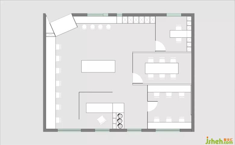 室内设计师在原始空间中根据不同的部门放置了各种不同的盒子,然后用玻璃去进行分割。从而使开放与独立得以共生。