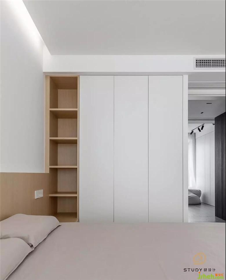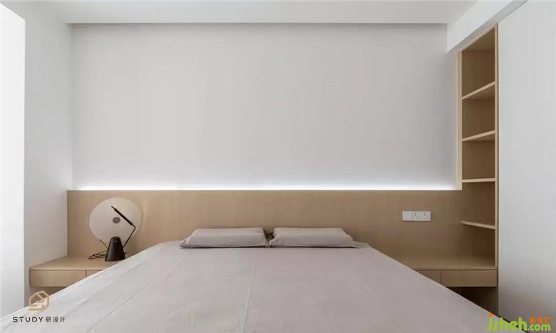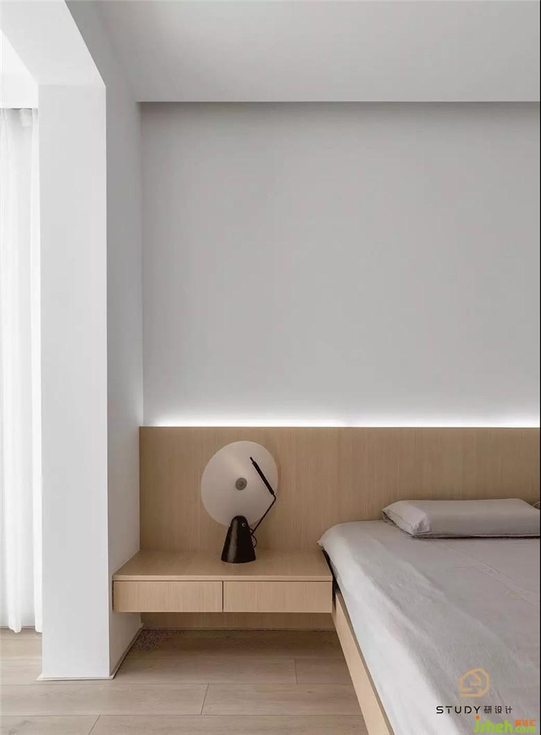 纯净是进入这个空间的第一感觉,卧室依旧保持极简状态。光与白墙协作,共同筑造这个纯净且耐人寻味的空间。床与柜体均现场制作,白色木色的舒服搭配,卧室空间没有了极简的冰冷,温润蔓延整个空间,功能性也大大增强。