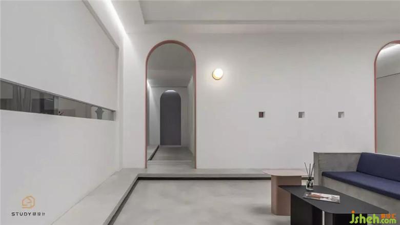 常规的休息区满足不了瑜伽馆中的客人,所以在空间入口和局部进行了抬高处理,形成了一圈阶梯,去满足客人的休息和交流,同时还可以营造空间的仪式感。
