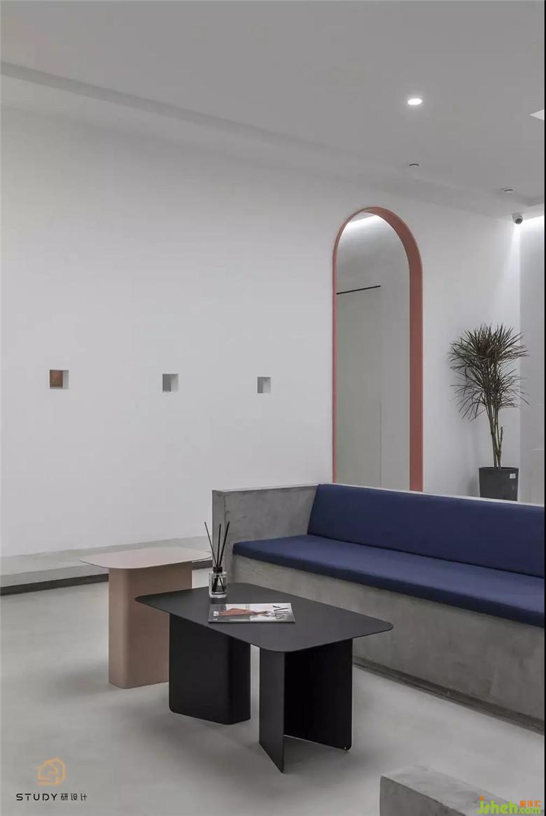外立面的设计上采用半私密性的手法,没有完全开敞,而是开了一个长方形的洞口,通过这个洞口去刺激路人的窥探欲。