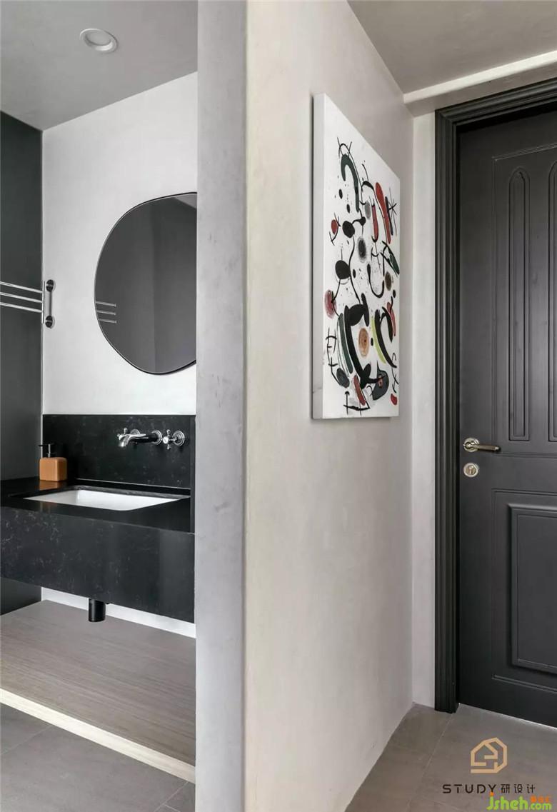 悬空的盥洗台让整个空间轻盈起来,墙出龙头与墙排下水的使用也使得空间更为规整,干净利落。