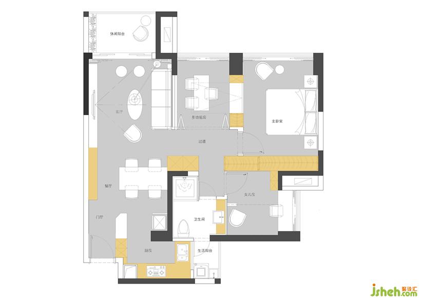 家是永远的避风港,为了使屋主返家后能够完全放松,跳脱过往、收纳不足让人烦躁的空间气氛,全室以中性色为主轴,超脱风格框架的局限,大量选用灰色铺陈空间基底,搭配金属、铁件、柔光砖及艺术涂料,并结合简练、俐落的线条与灯光设计,将台湾设计师「疗愈空间概念」植入本案,回归人的心理感知,审慎思考人与空间的关系,解决生活机能、空间感知与视觉美感等各种问题。