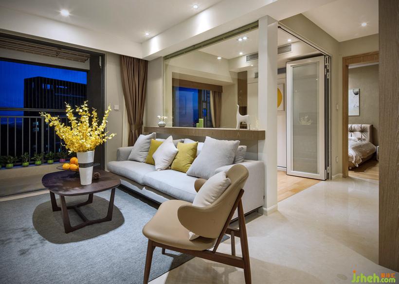 沙发后方的多功能间,折页门片内带百叶形式,让空间可以“呼吸”,有亲友留宿时多功能房上掀床也可以满足使用功能。设计公司