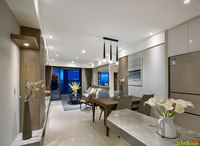 开阔的客餐厅感觉,采用点光源的方式,让灯光更加丰富多元,摒弃了客厅主灯的设计,让视野尽可能的方大,提升生活品质。