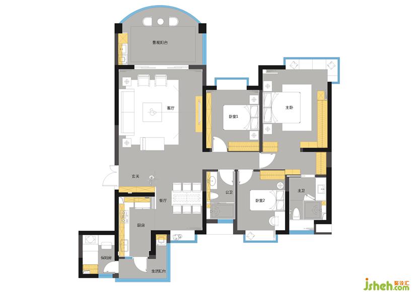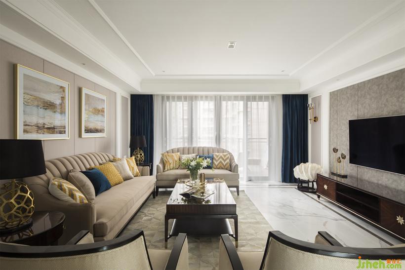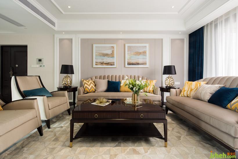 暗金色的饰品挂画,搭配可至的贝壳沙发,营造适合屋主的居家品味。设计公司