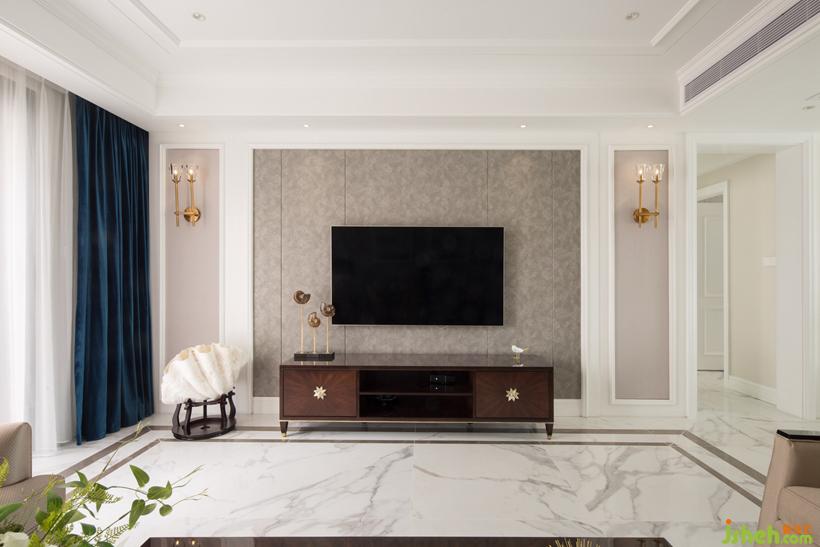 运营对称的设计元素,强化电视主墙的仪式感,壁灯也起到了丰富空间光源的作用。