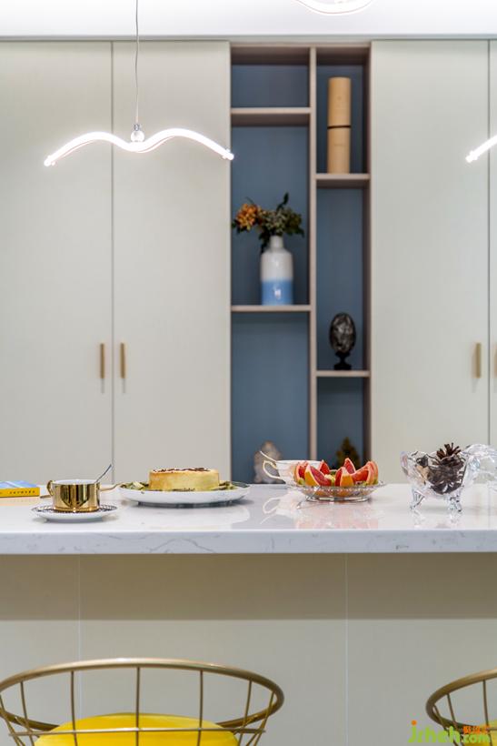 功能强大的吧台柜。另一面藏着一个冰箱、一个消毒柜