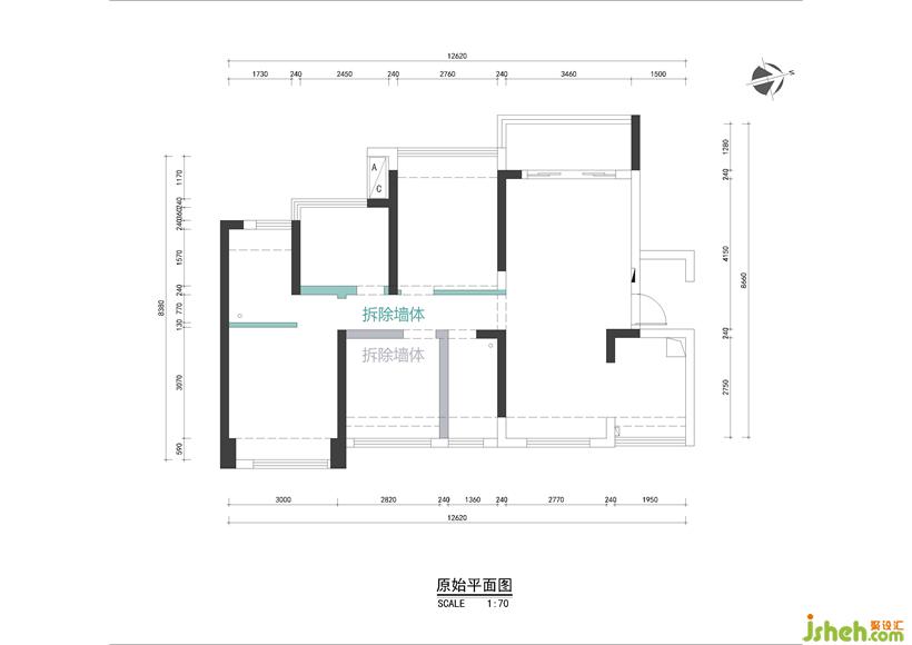 拆除绿色墙体,将书房与客餐厅联结。又将主卧与衣帽间联结。设计公司