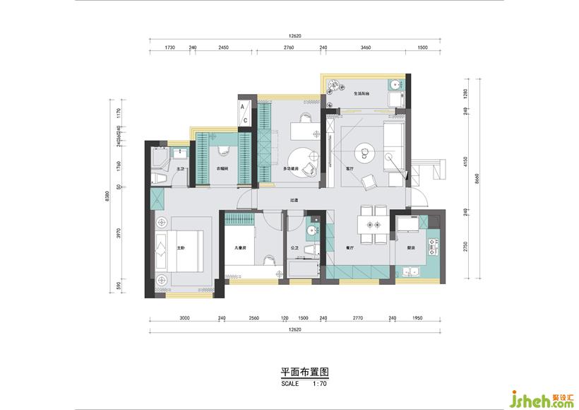 主卧:调整开门位置,移动主卫墙体,小房间做衣帽间并入主卧,使其功能完善。设计公司