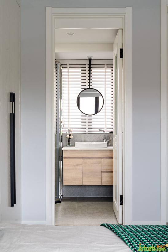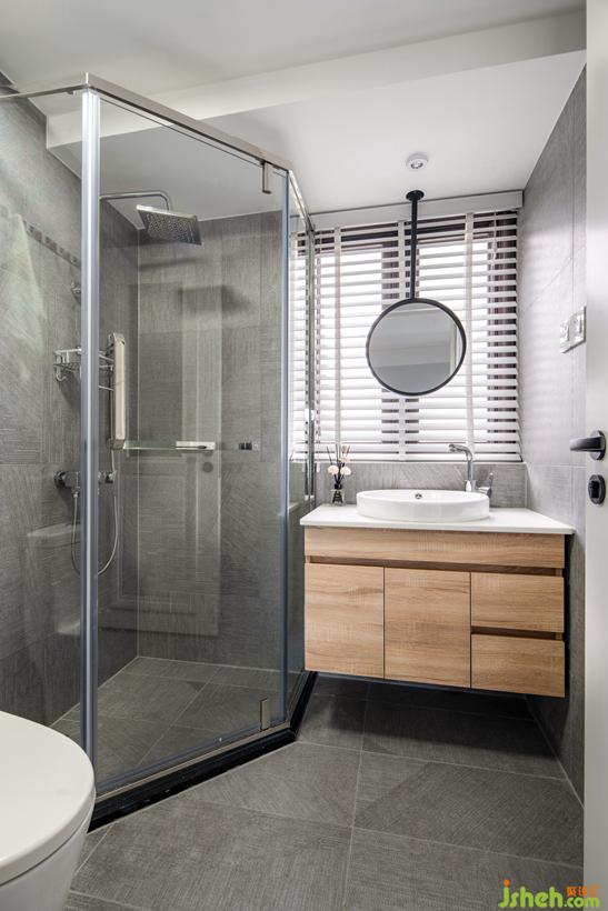 洗面台布置在窗前。在天花上固定一个吊镜。不影响开窗。