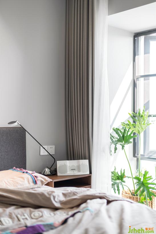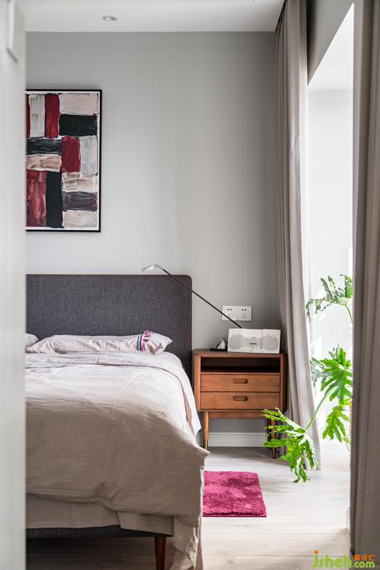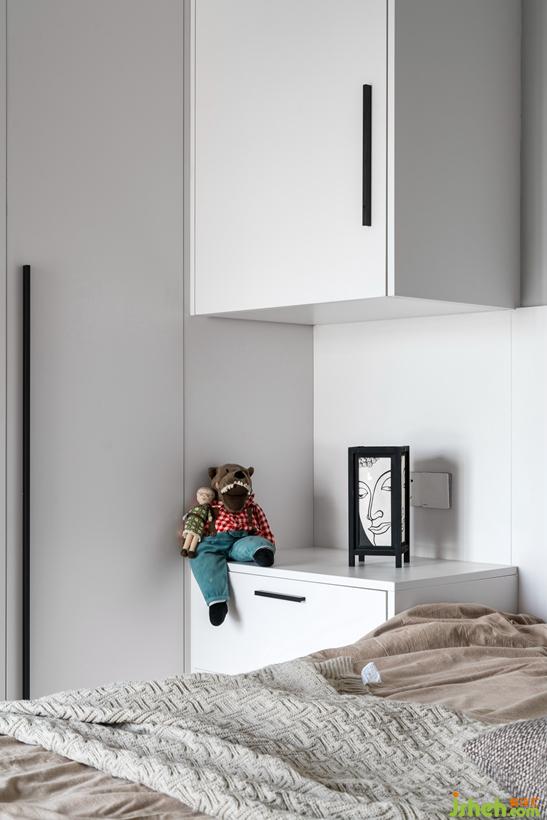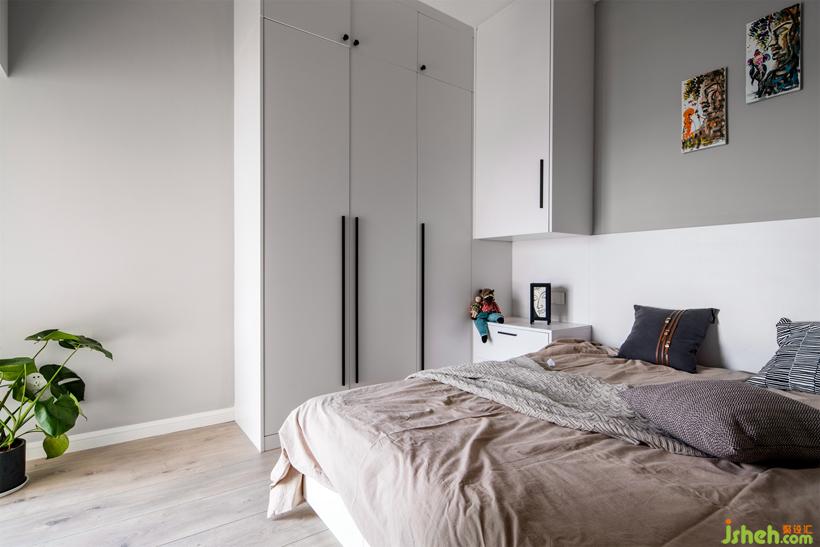榻榻米与柜体整体定制,在小房间内完成强大的收纳。柜体做空,自然形成床头柜。