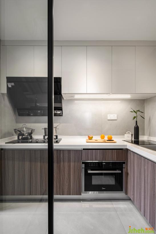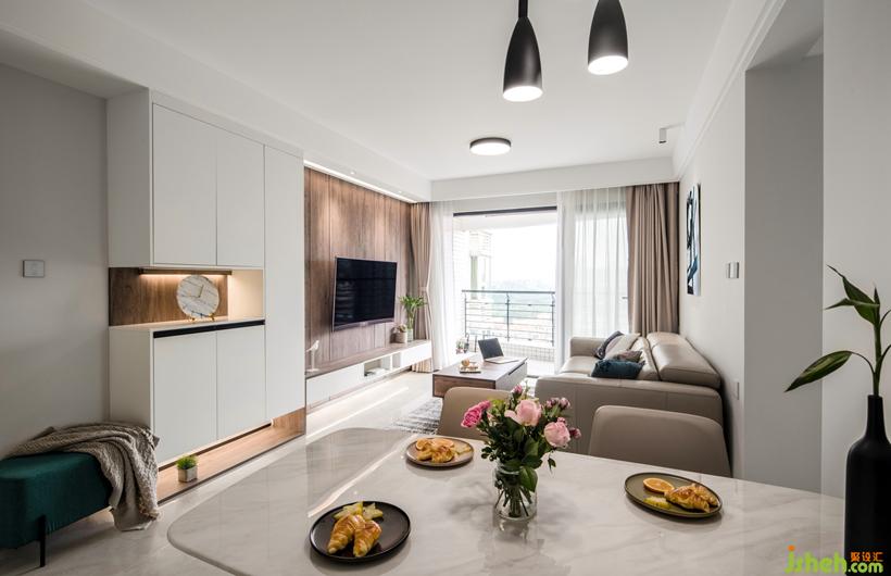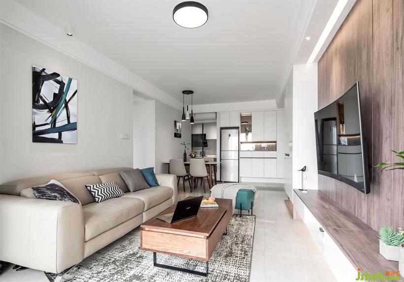 同视角对比---实景图 全屋柜体定制将材质统一,电视吊柜在安装前需要做好预埋角铁的工作。柜体起伏的层次,创造出不拘的形式。