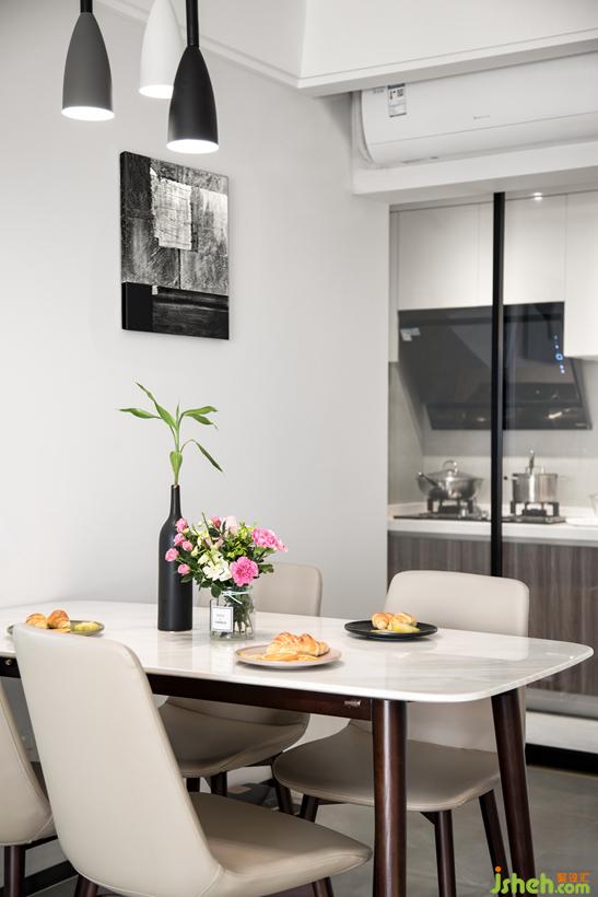 在灯具安装完成后,我们发现餐厅的灯具装成了筒灯,而从实用性上考虑。人是坐在椅子上用餐的,如果灯具太高反而看不清楚,菜品也会显得没食欲。换成吊灯后,用餐的氛围更有情调。