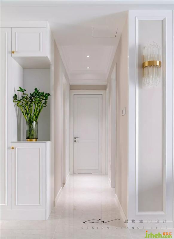 过道的柜特意留出空位,线框的带来仪式感。天花并没有吊平处理,而是延承客餐厅的的造型。装修设计