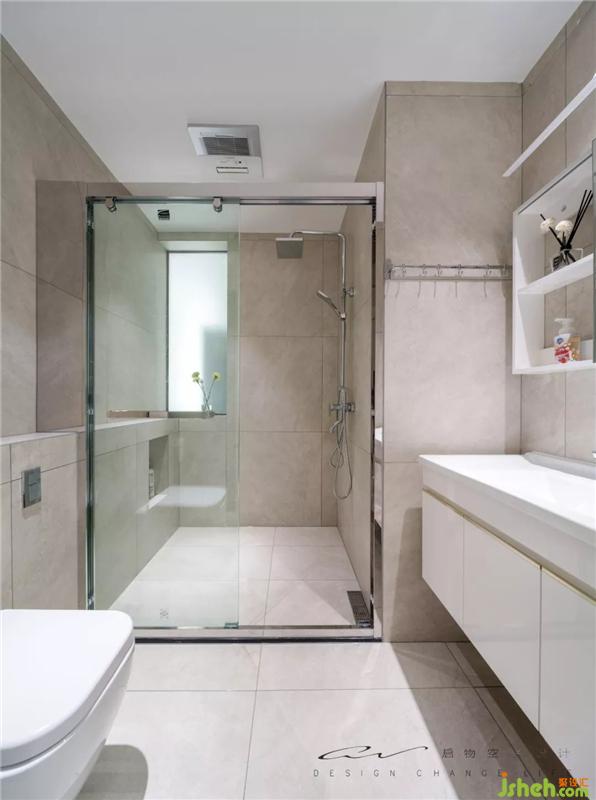 原公卫很不合理,我们将马桶改为墙排,sherry的妈妈担心会堵,我们坚持了很久说服了阿姨。矮墙延伸到淋浴房,留出壁龛。上方又是个很好的置物位置。