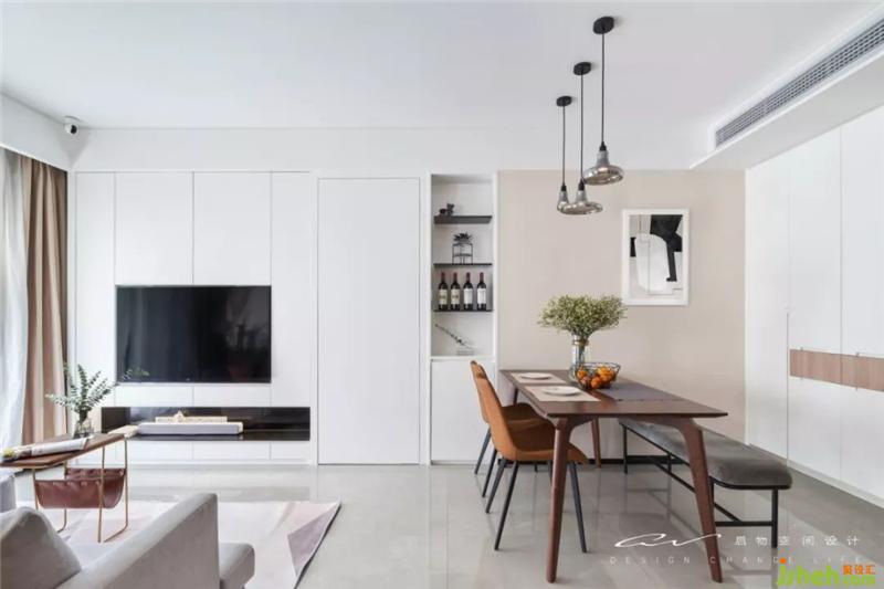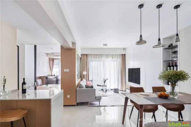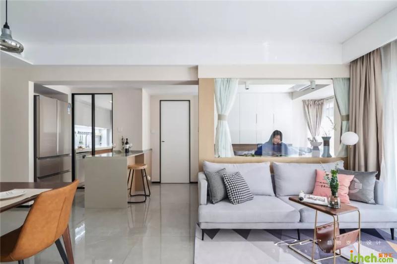 实际套内面积仅55平,但想做到100平的平效?书房通透+轻食区外置+客餐厅,成果肉眼可见。 装修设计