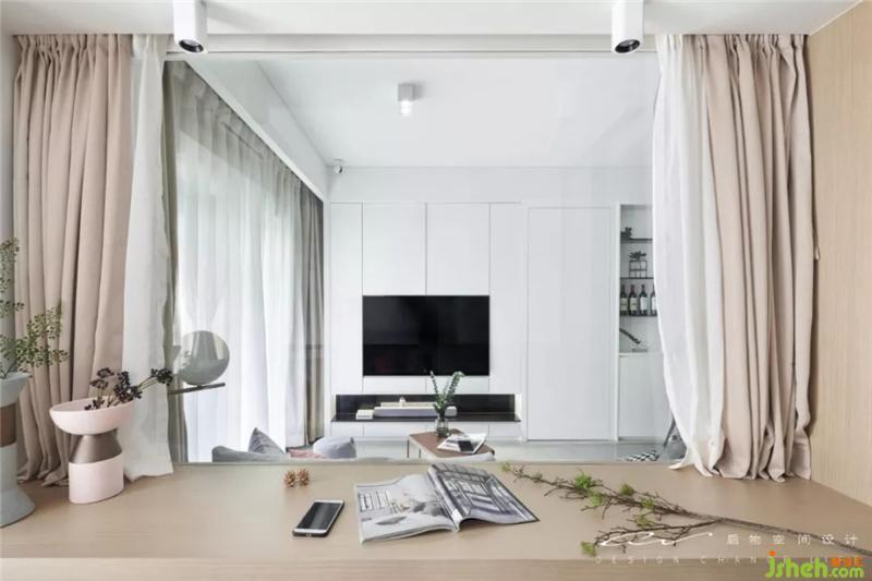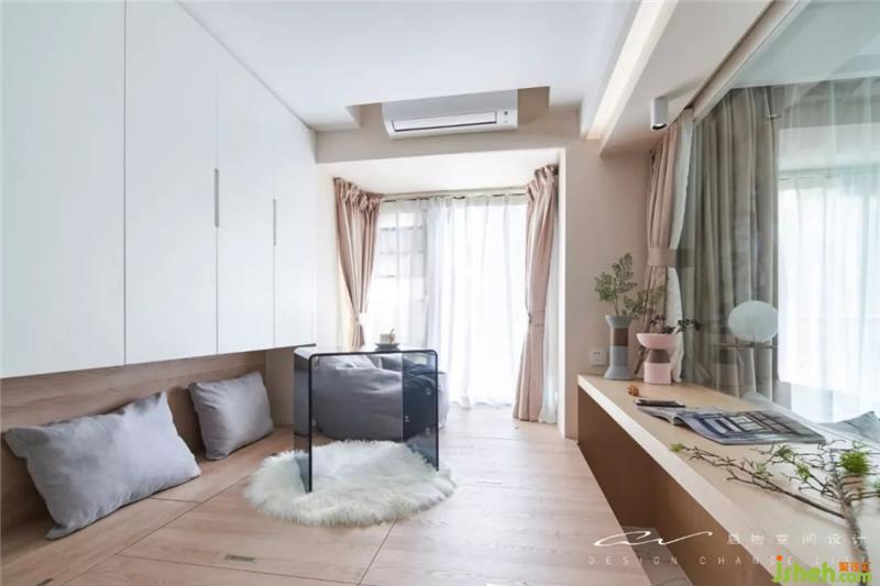 懒人沙发和斜阳最搭配,钢化玻璃茶几不给房间添堵。