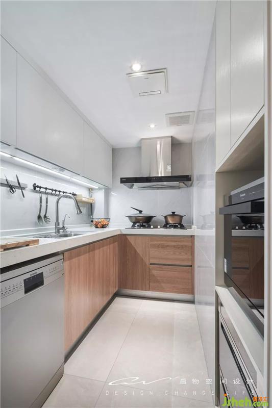 厨房新增电器柜,连冰箱都换成了对开门的。还能争取到更多台面,厨房更好用。装修设计
