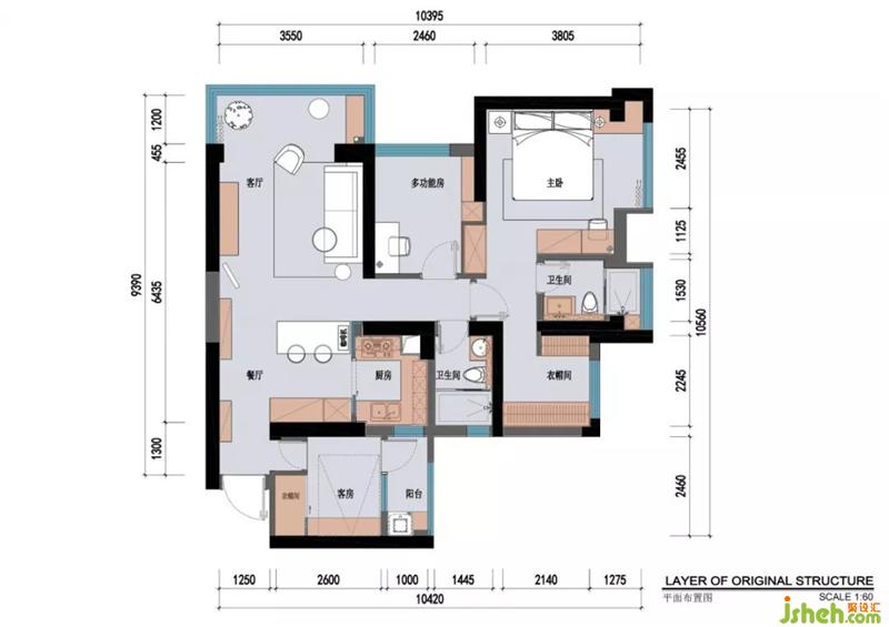 3:最靠里的卧室改成衣帽间,作为主卧的套间。
