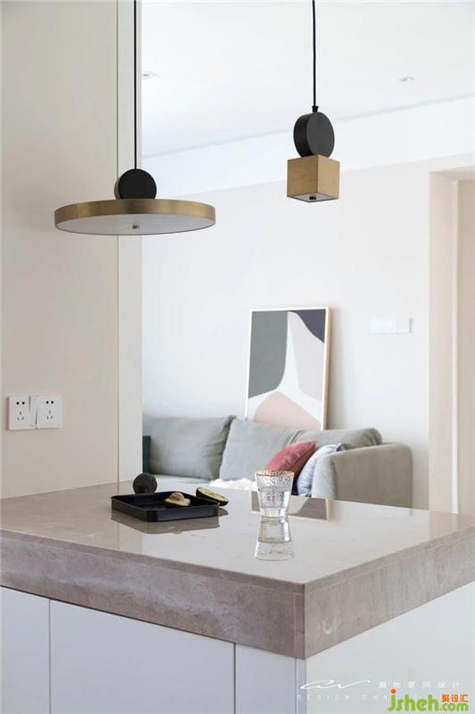 如上所说,此处辟为吧台,可以想象原格局一堵实墙,视觉封闭的效果。 进门后不用慌张跑去找充电位,喝杯水在吧台可以优雅解决。
