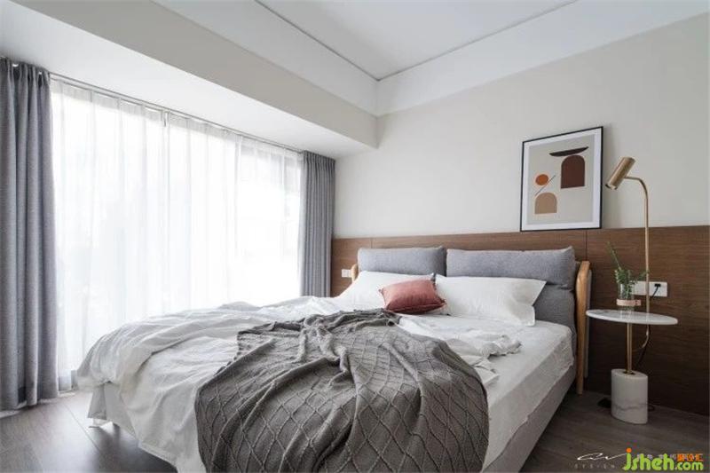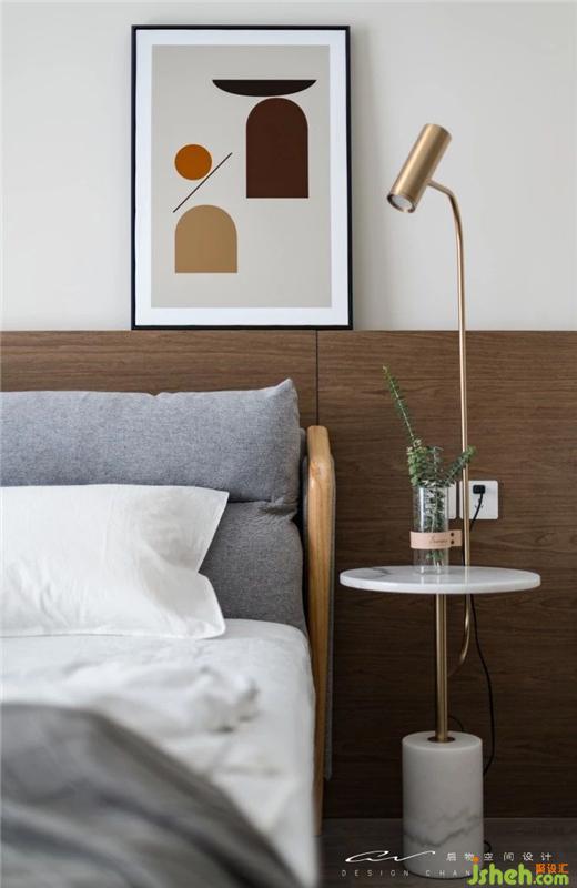 床背木工师傅制作,依稀感到木皮的肌理。选择亲肤的床品,借助睡眠到达第二天清晨。装修设计