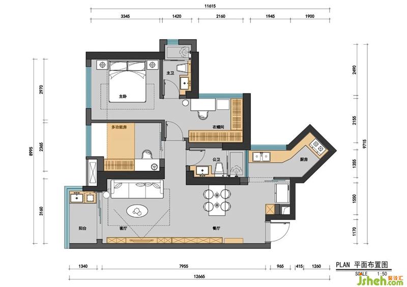 ▶厨房移到异形阳台 原位置解放 客餐厅变大