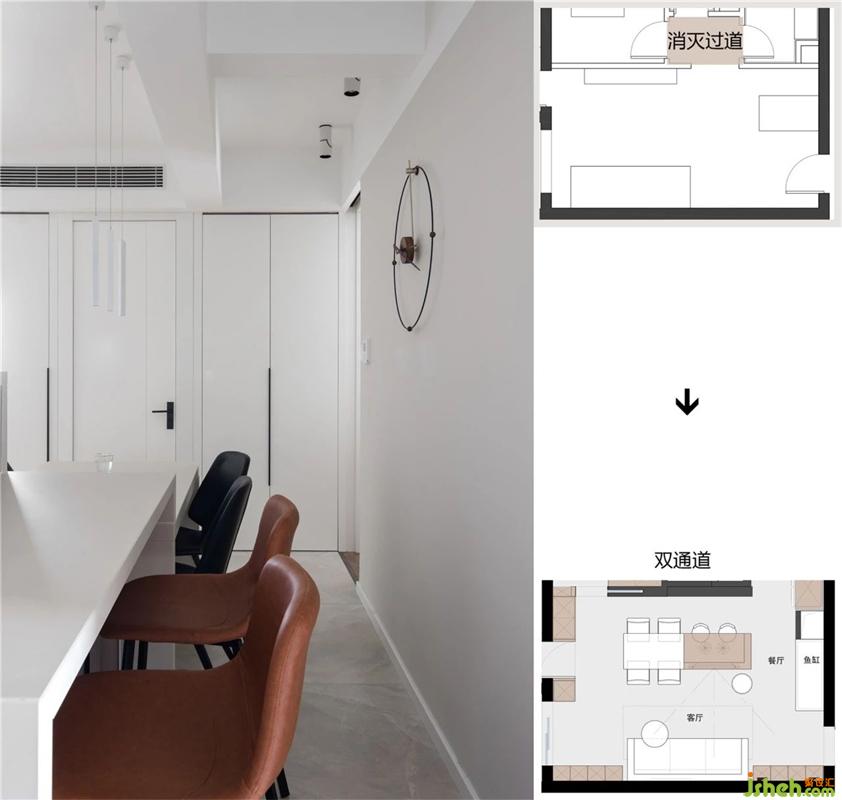 EN~亮点!68m²的房子也有双通道的布局,在家也能少走弯路,此举消灭了旧房的过道。装修设计