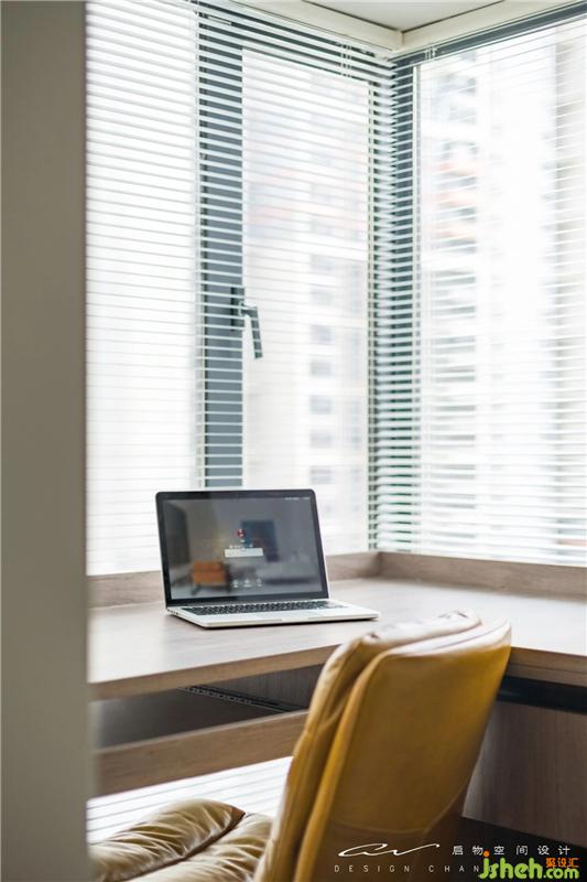 预备的儿童房:转角书桌,用百叶调节光线。装修设计