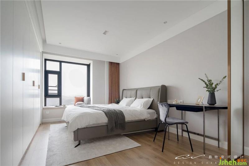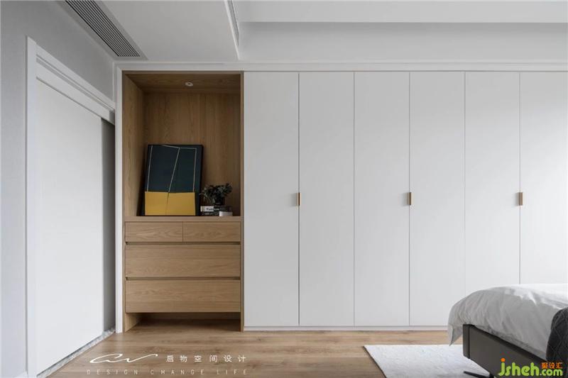主卧这样布局考虑到,床头即能看到窗外的景色, 又能收纳CC姐的大量衣物。装修设计