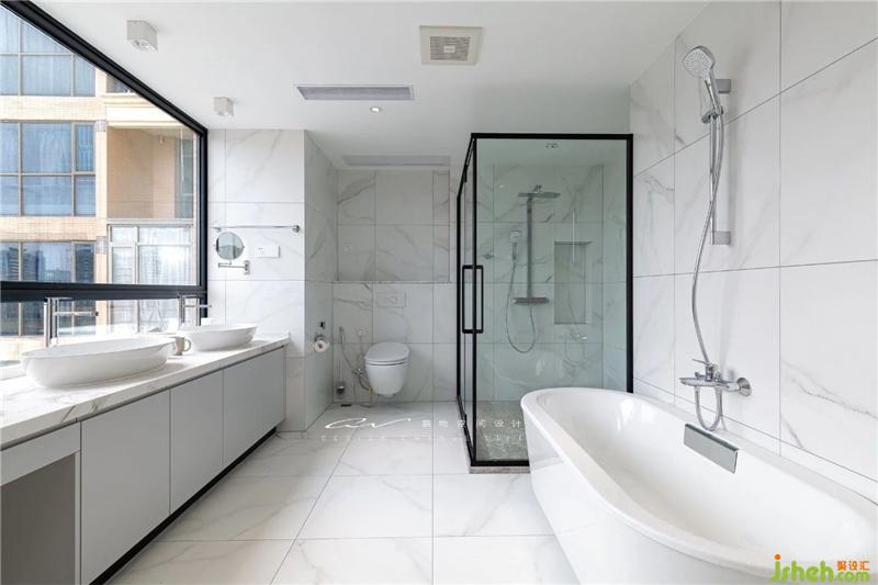 主卫足足13平方,洗面台面向窗外,酒店般的品质。装修设计