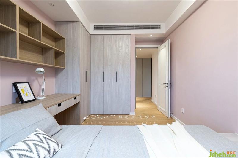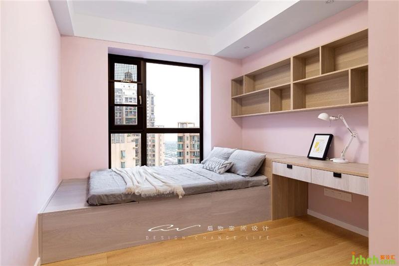 从过道来到女儿房,同样造榻榻米,柜子巧妙找地站。收纳棒颜值靓,住个10年都不乱!以后买买买也可以的。装修设计