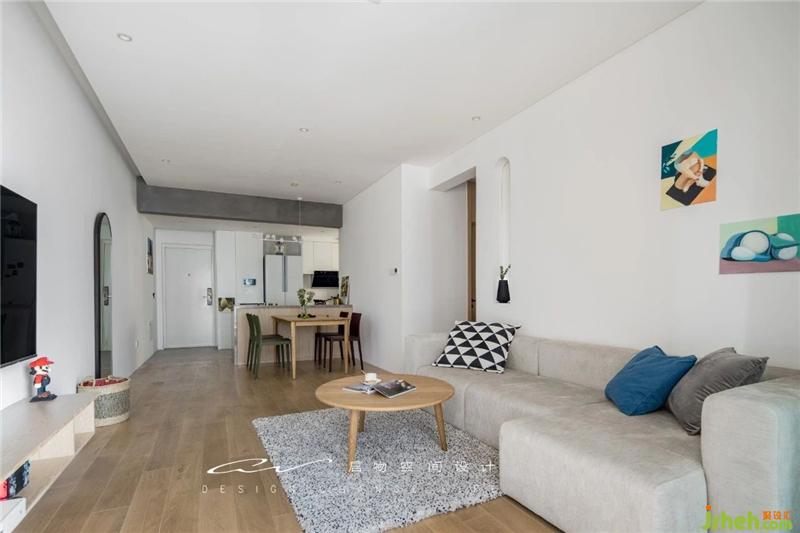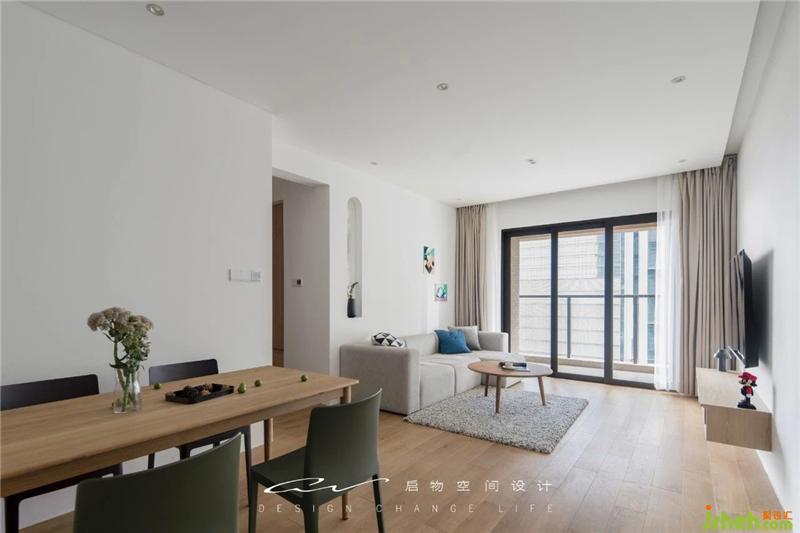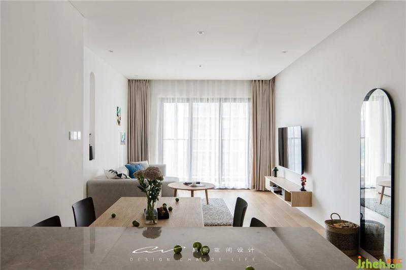 白色墙面散发宁静。沙色窗帘、地板气氛和谐。