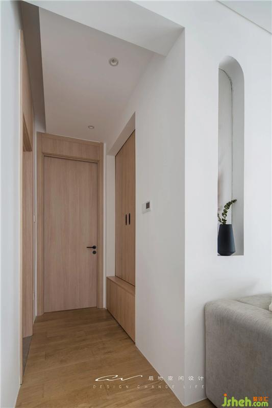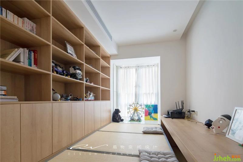 过道规范了门的高度,书房推拉门直接落在榻榻米上。装修设计