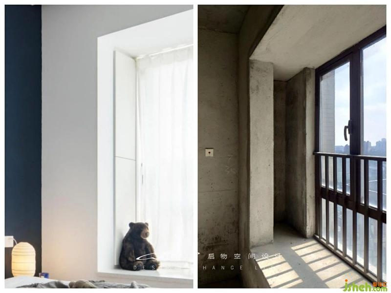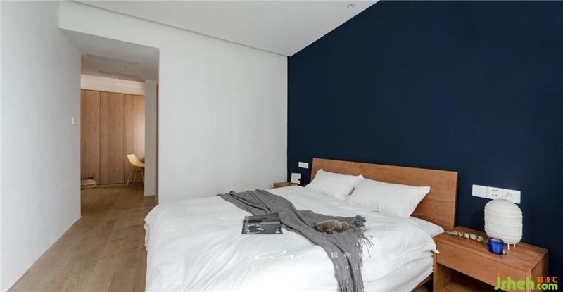 全房不施地脚线,主卧一片白茫,床头刷中铁蓝表达宁静。装修设计