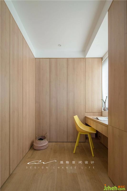 衣帽间柜门到顶。颜色接近于地板。装修设计