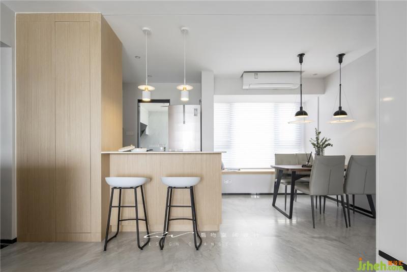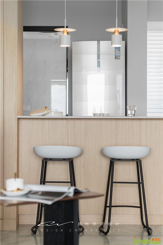 Tip:吧台台面与鞋柜平齐,底柜缩进300mm,拯救无处安放的腿,这样的吧台才能久坐哦!