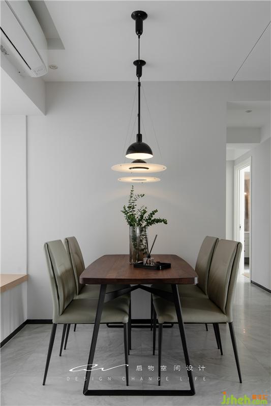 餐厅整洁大大归功于,启物研究出《空调管线隐藏宝典》。挂壁式空调暗藏在吊顶下,与墙面融为一体美观又大方。即使是白墙,通过极简家具与个性吊灯的搭配,加上几支碧绿的尤加利的点缀,也让这个餐厅不简单!