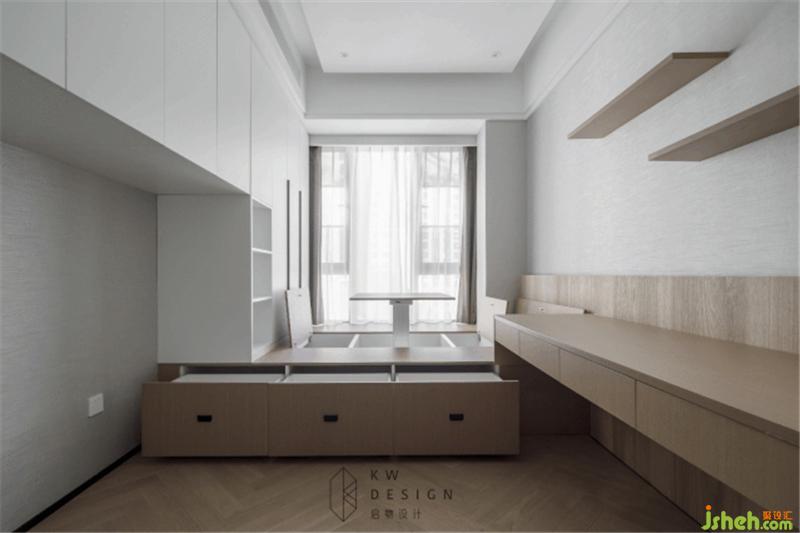 多功能房是将来小朋友的房间,目前作为书房使用。收纳强悍,兼具长书桌与钢琴位。装修设计