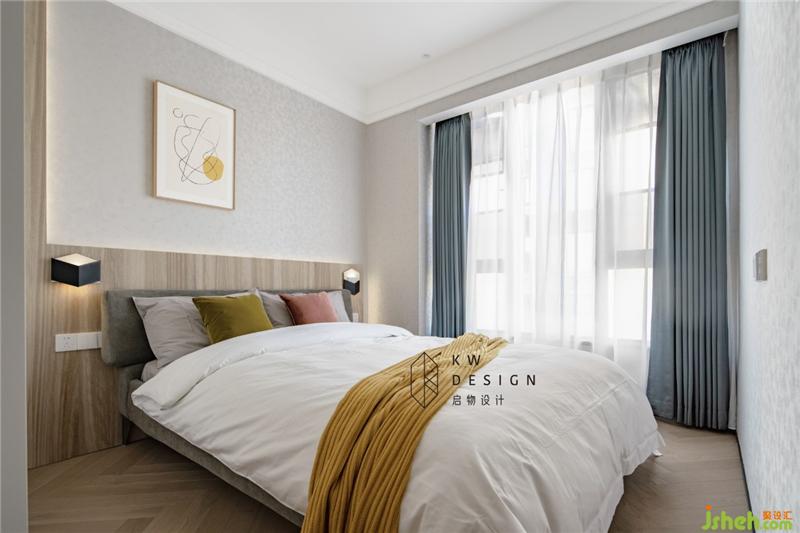 主卧用对称的手法表达秩序感。设计细节在硬包缝与木饰面接缝的齐整。