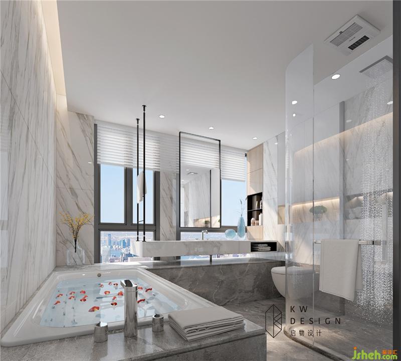 浴缸留有电热毛巾架位置,确保洗完澡有热乎干燥的毛巾使用。装修设计