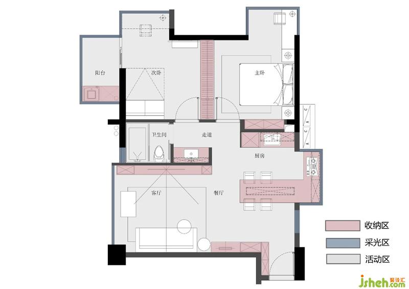 ▶屋主2-3年会考虑小宝宝,有了小宝宝之后,父母也会过来一起住。短期内主要考虑夫妻两人一猫的居住舒适度,长期要考虑孩子有玩耍活动的区域以及父母暂住的空间,我们把原本主次卧室两个空间对换,重新改墙体使两个主次空间拥有各自完整机能。