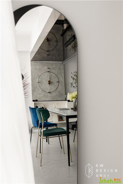 从客厅望向卧室,一眼看到这小小的绿色角落,简约设计,能令人想起图书馆,艺术展的一些小角落。给人休憩放松之感。